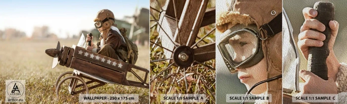 Prøve Fototapet Premium Sand - Start mod drømmen - Dreng, Fly, Årgang - 100x30 cm