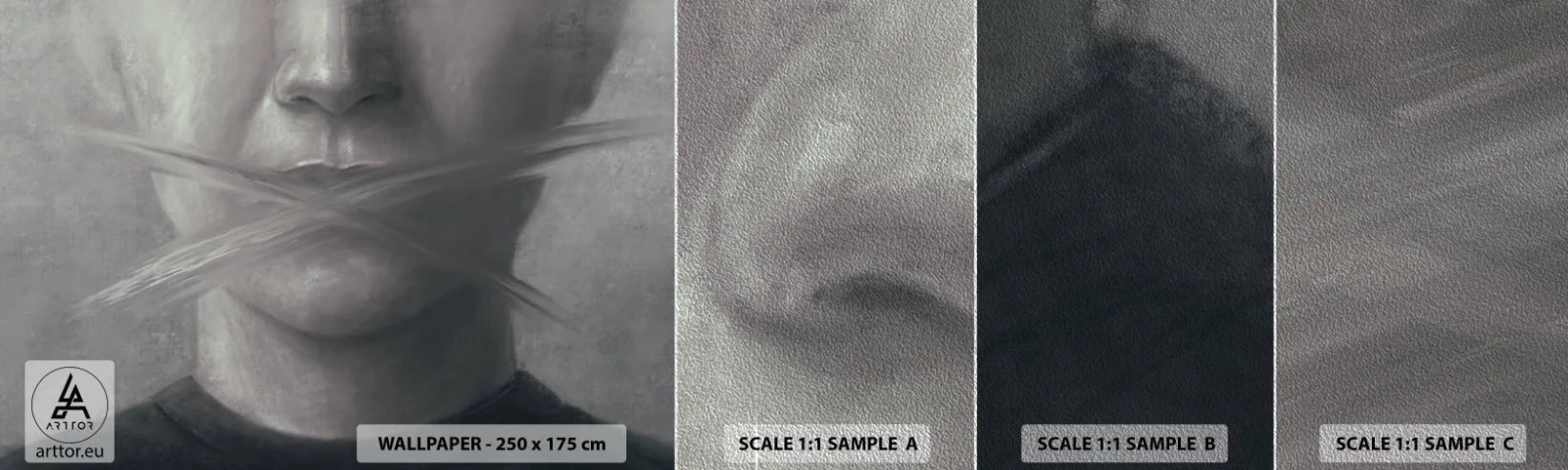 Prøve Fototapet Premium Sand - Ikke et ord - Abstraktion, Grafik, ansigt - 100x30 cm