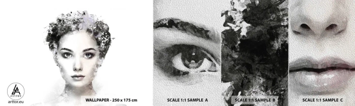 Prøve Fototapet Premium Sand - Et meget stilfuldt portræt - Kvindens ansigt, Kvinde, Abstraktion - 100x30 cm