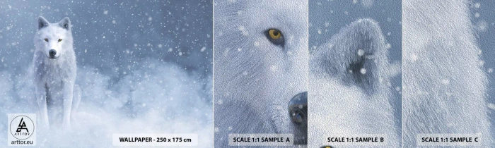 Prøve Fototapet Premium Sand - I vinterens ånd - hvid ulv, Dyr, Vinter - 100x30 cm