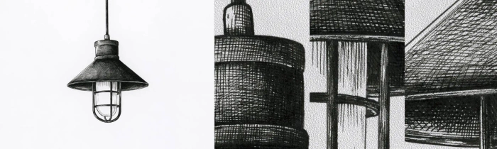 Prøve Fototapet Premium Sand - Som for mange år siden... - Lampe, Tegning, Blyant - 100x30 cm