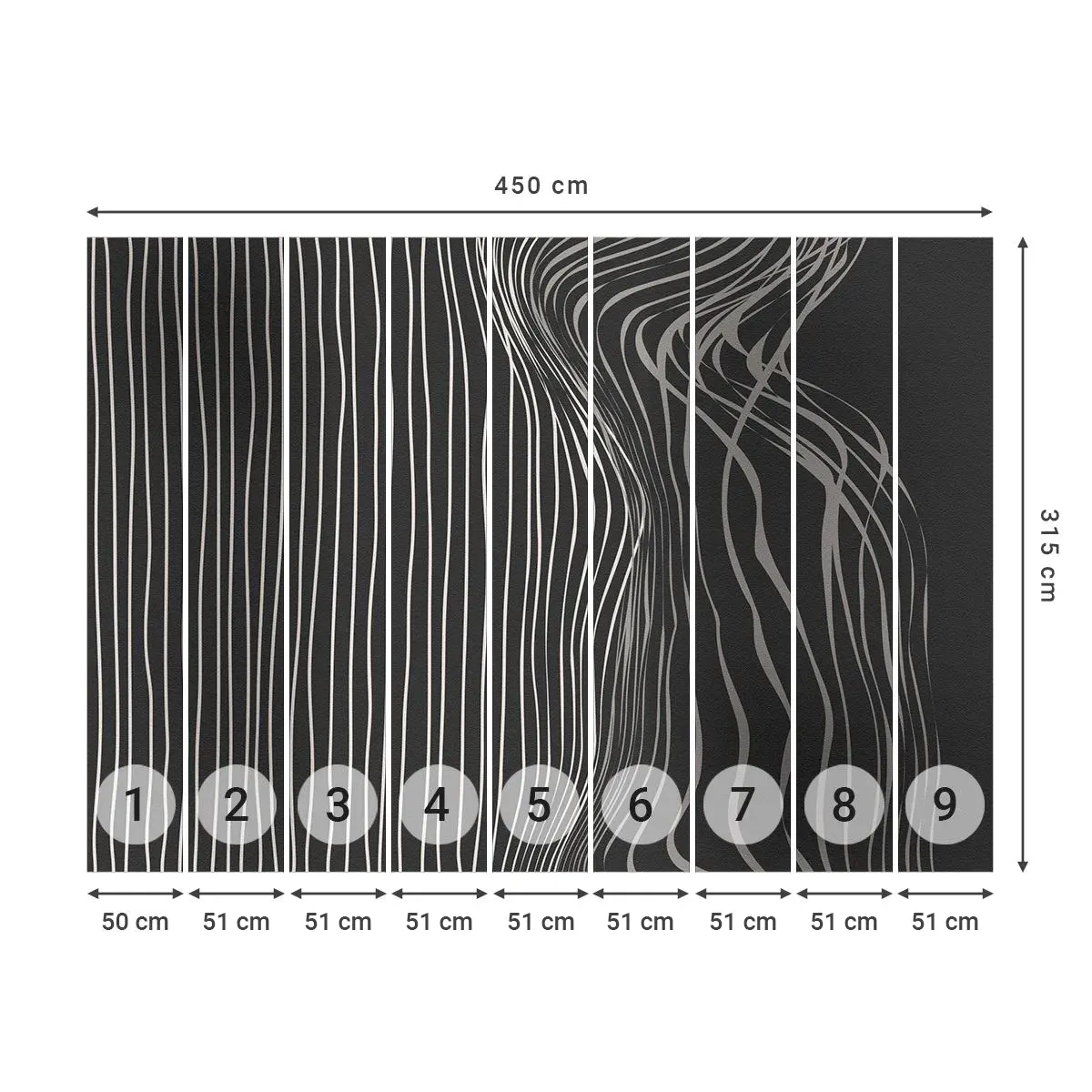 Fototapet Selvklæbende Deluxe Sticker - Rytme og accent - Abstraktion, Stykke, Sort og hvid - 450x315 cm