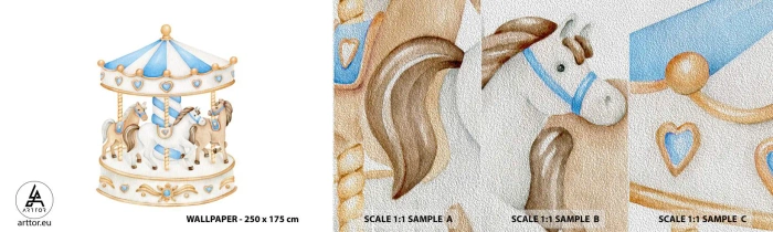 Prøve Fototapet Premium Sand - Sød barndom - Heste, Merry-go-round, Børns - 100x30 cm