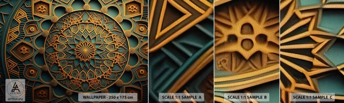 Farverne på fototapetet kan afvige fra dem, der er synlige på computerskærme eller mobilenhedsskærme. Vi anbefaler at bestille en prøve, før du beslutter dig for at købe hele fototapetet. Dimensionstolerance for baner op til 3 mm. Mønsteret forbliver ensartet og æstetisk efter montering.