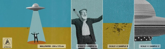 Prøve Fototapet Premium Sand - Et tæt møde - Ufo, Moderne kunst, Surrealisme - 100x30 cm