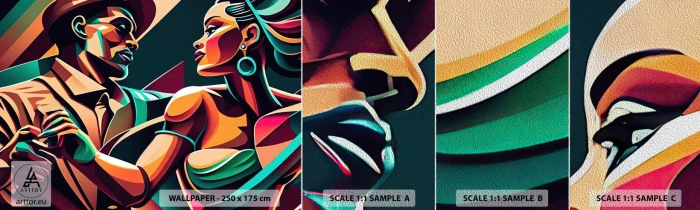 Prøve Fototapet Premium Sand - I hjertets rytme - Kubisme, Par, Dans - 100x30 cm