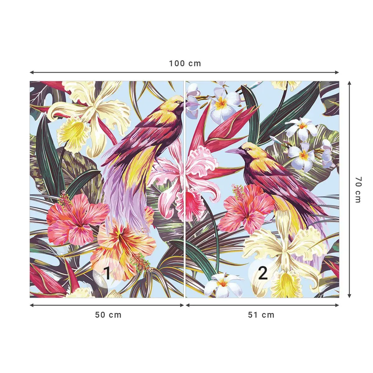 Fototapet Selvklæbende Deluxe Sticker - Kronblade og fjer - Fugl, Blomster, Have - 100x70 cm