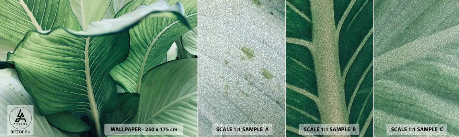 Prøve Fototapet Premium Sand - Livet er intenst grønt - Blade, Eksotisk, Botanisk - 100x30 cm