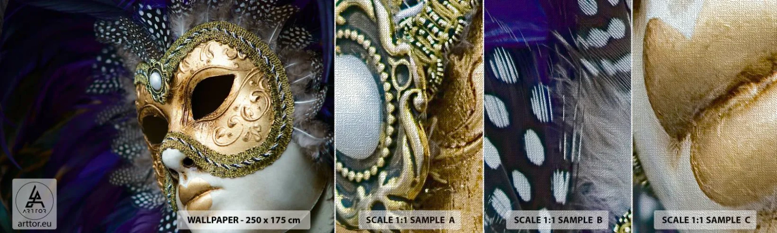 Prøve Fototapet Premium Canvas - Venetiansk portræt i guld - Hætte, Stykke, Venedig - 100x30 cm