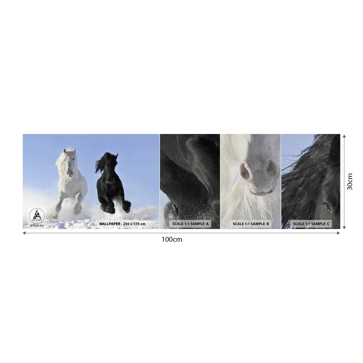 Prøve Fototapet Premium Canvas - Sort og hvid galop - Dyr, Hest, Vinter - 100x30 cm