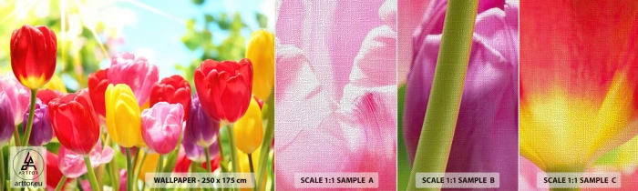 Prøve Fototapet Premium Canvas - Det er os, maj måneds farver! - Blomster, Tulipaner, Have - 100x30 cm