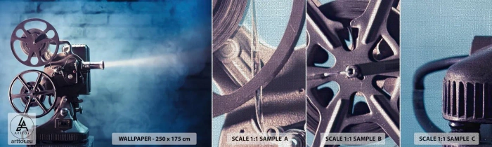 Prøve Fototapet Premium Canvas - I en gammel biograf - Filmprojektor, Årgang, Kamera - 100x30 cm
