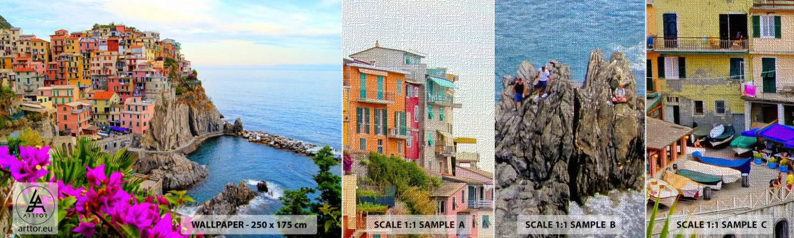Prøve Fototapet Premium Canvas - En grinende by - Landskab, Manarol, Italien - 100x30 cm
