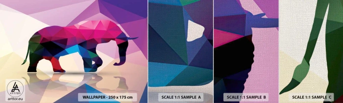 Prøve Fototapet Premium Canvas - Krystal dinosaur - Dyr, Elefant, Geometrisk figur - 100x30 cm