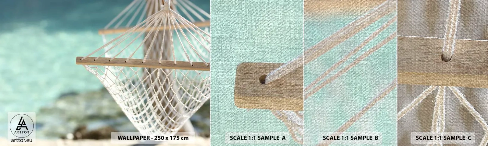 Prøve Fototapet Premium Canvas - Tid til afslapning - Hængekøje, Strand, Rejser - 100x30 cm