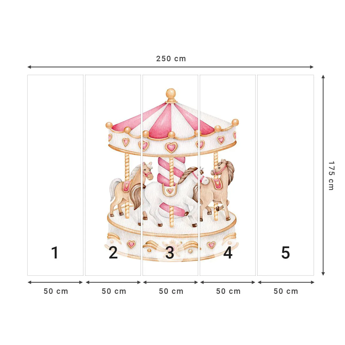 Fototapet Premium Sand - Barndommens søde verden - Merry-go-round, Girly, Heste - 250x175 cm