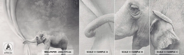 Prøve Fototapet Premium Canvas - Afslør hemmeligheden - Abstraktion, Elefant, Grafik - 100x30 cm