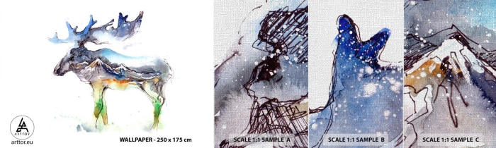 Prøve Fototapet Premium Canvas - Helten i en vinterfortælling - Abstraktion, Elg, Bjerge - 100x30 cm