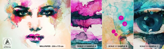 Prøve Fototapet Premium Canvas - Portræt malet med en regnbue - Abstraktion, Kvindens ansigt, Stykke - 100x30 cm
