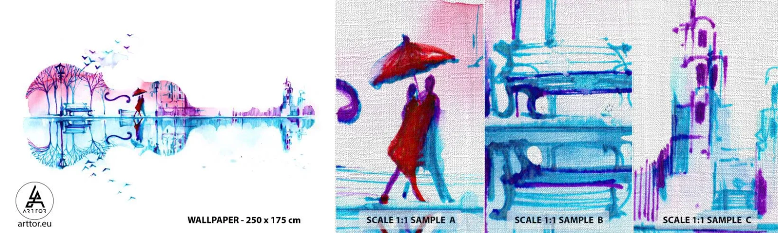 Bestil et specialfremstillet ARTTOR fototapet og nyd en perfekt pasform til din væg. Med denne mulighed sparer du penge ved ikke at betale for overskydende materiale, og mønsteret bliver perfekt integreret i det rum, du vil dekorere. Tilpas fototapetet og skab en unik indretning!