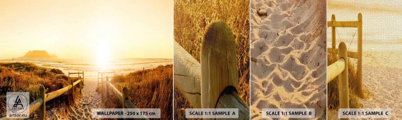 Prøve Fototapet Premium Canvas - Over klitten, mod solen - Landskab, Strand, Solnedgang - 100x30 cm