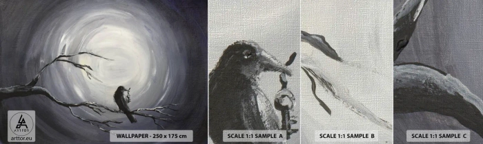 Prøve Fototapet Premium Canvas - Nøglen til nattens mysterium - Abstraktion, Krage, Fugl - 100x30 cm