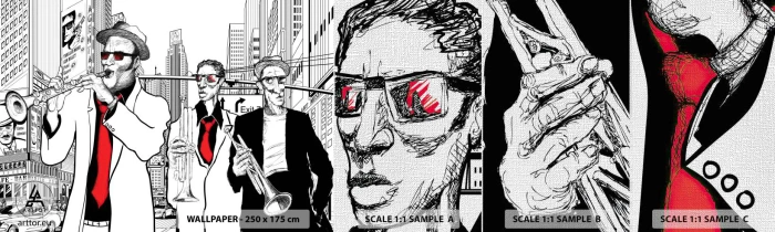 Prøve Fototapet Premium Canvas - By rapsodi i sort og rødt - New York, Jazz, musik - 100x30 cm