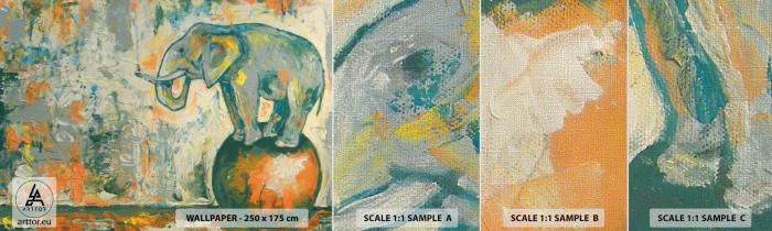 Prøve Fototapet Premium Canvas - Længe leve cirkusset! - Abstraktion, Elefant, Cirkus - 100x30 cm