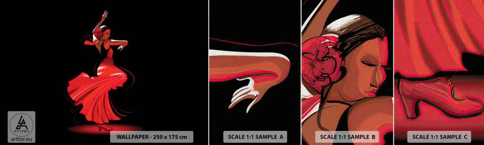 Prøve Fototapet Premium Canvas - Flamencoens brændende ånd - Danser, Flamenco, Dans - 100x30 cm
