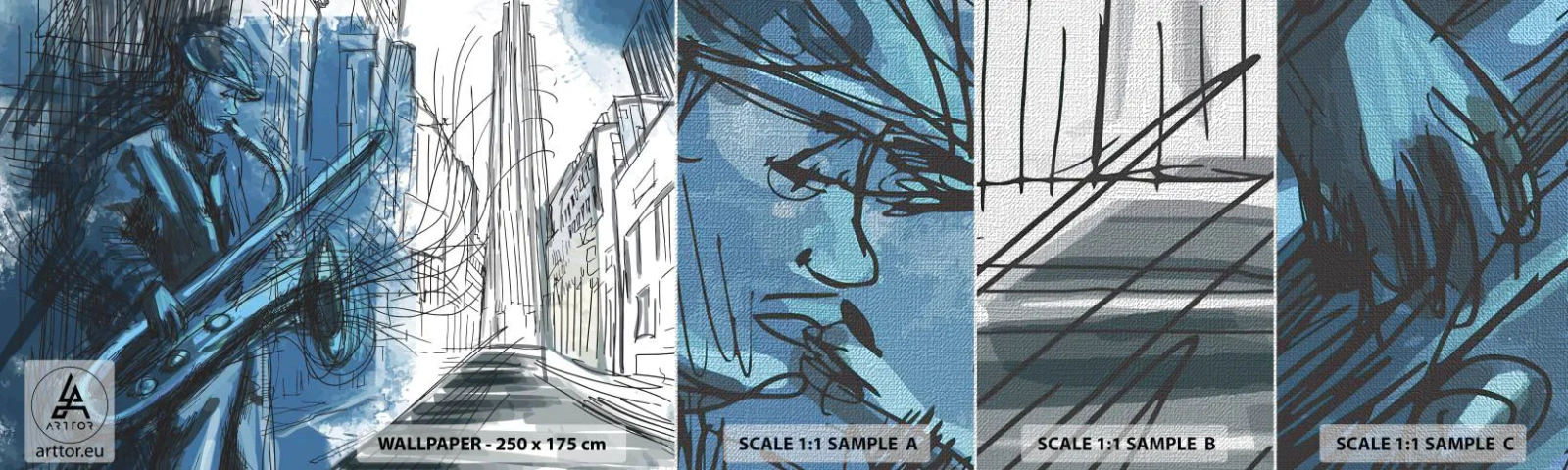 Prøve Fototapet Premium Canvas - Byens rapsodi - Saxofon, Jazz, musik - 100x30 cm
