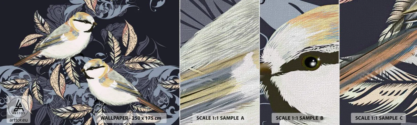 Farverne på fototapetet kan afvige fra dem, der er synlige på computerskærme eller mobilenhedsskærme. Vi anbefaler at bestille en prøve, før du beslutter dig for at købe hele fototapetet. Dimensionstolerance for baner op til 3 mm. Mønsteret forbliver ensartet og æstetisk efter montering.