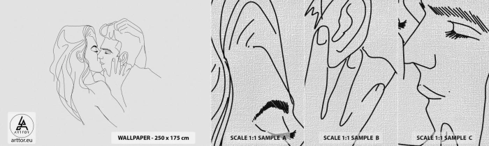 Prøve Fototapet Premium Canvas - I samme linje - Grafik, Forelsket par, Kys - 100x30 cm