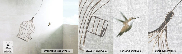 Prøve Fototapet Premium Canvas - I sit elementet - Abstraktion, Fugl, Fuglebur - 100x30 cm