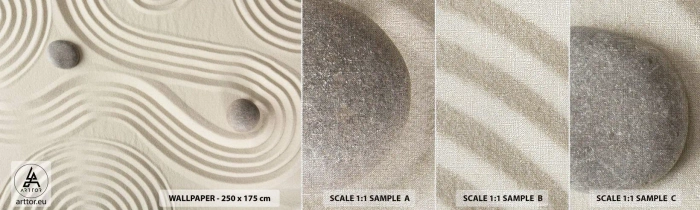 Høj grammatik 290g/m2 sammen med en taktil struktur Sand på overfladen af tapetet gør produktet til en eksklusiv og designorienteret løsning for alle, der leder efter unikke indretningsdekorationer. Fordelen ved materialets ekstraordinære tykkelse er også fremragende dækning, hvilket samtidig letter installationen betydeligt. Strukturen fototapet PREMIUM SAND giver indtryk af et print på en fin struktur, der minder om sand.