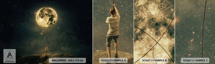 Prøve Fototapet Premium Canvas - En, der stjal månen - Måne, Stjerner, Fantasi - 100x30 cm
