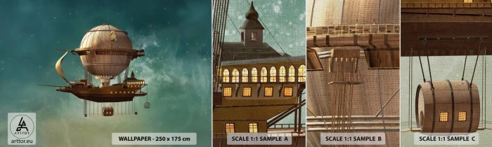 Prøve Fototapet Premium Canvas - Jules Verne hilser - Retro, Rejse, Ballon - 100x30 cm
