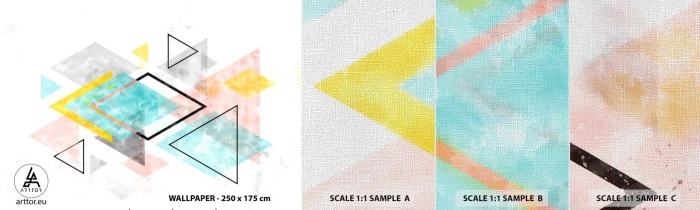 Prøve Fototapet Premium Canvas - Geometrisk leg - Lyse, Trekanter, Minimalisme - 100x30 cm