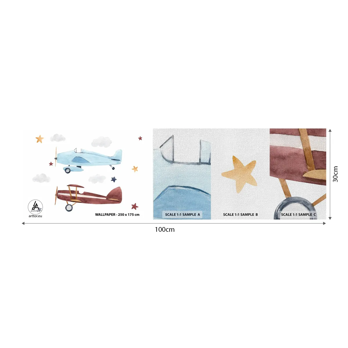 Prøve Fototapet Premium Canvas - Hr. pilot, vi venter! - Flyvemaskiner, Retro, Børns - 100x30 cm