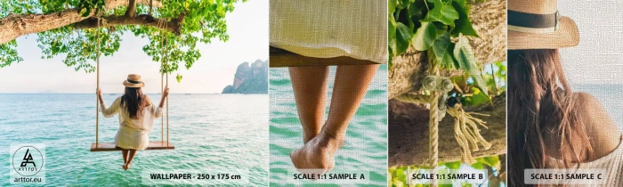 Prøve Fototapet Premium Canvas - Livet er smukt - Lempelse, Svinge, Kvinde - 100x30 cm