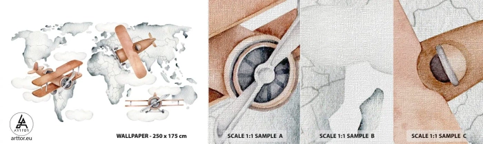 Prøve Fototapet Premium Canvas - I den banebrydende ånd - Verdenskort, Flyvemaskiner, Børns - 100x30 cm