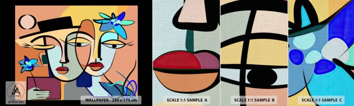 Prøve Fototapet Premium Canvas - Picassos randez vous - Ansigter, Moderne, Kubisme - 100x30 cm