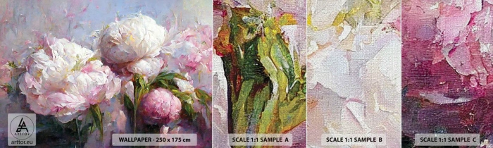 Prøve Fototapet Premium Canvas - En buket fyldt med liv - Blomster, Pæoner, Klassicisme - 100x30 cm