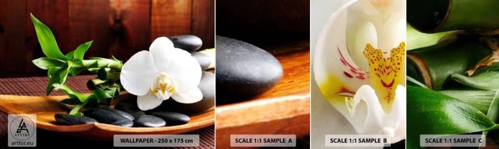 Prøve Fototapet Selvklæbende Deluxe Sticker - Overgiv dig til naturens berøring - Blomster, Orkidé, Orkidé - 100x30 cm