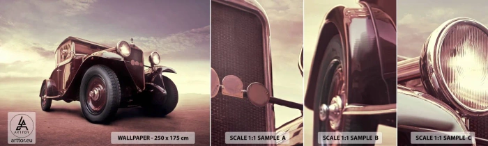 Prøve Fototapet Selvklæbende Deluxe Sticker - Lad os gå tilbage til de gamle dage.... - Automotive, Retro bil, Årgang - 100x30 cm