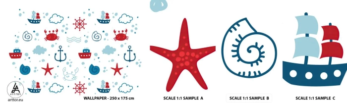 Prøve Fototapet Selvklæbende Deluxe Sticker - En fortælling om havet - sejlads, Nautisk, Anker - 100x30 cm