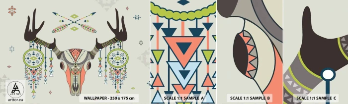 Prøve Fototapet Selvklæbende Deluxe Sticker - Indiansk jægers trofæ - Abstraktion, Hjort, Boho - 100x30 cm