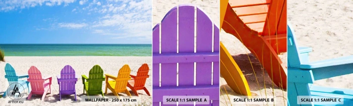 Prøve Fototapet Selvklæbende Deluxe Sticker - Regnbue strand - Landskab, Strand, Liggestole - 100x30 cm