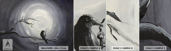Prøve Fototapet Selvklæbende Deluxe Sticker - Nøglen til nattens mysterium - Abstraktion, Krage, Fugl - 100x30 cm