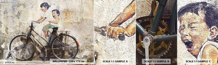 Prøve Fototapet Selvklæbende Deluxe Sticker - Sandt eller falsk? - Abstraktion, Vægmaleri, Cykel - 100x30 cm