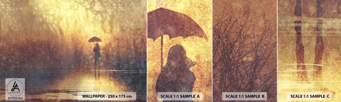 Prøve Fototapet Selvklæbende Deluxe Sticker - Jeg føler, at der er nogen, der kigger på mig - Abstraktion, Kvinde, Gå i regnen - 100x30 cm